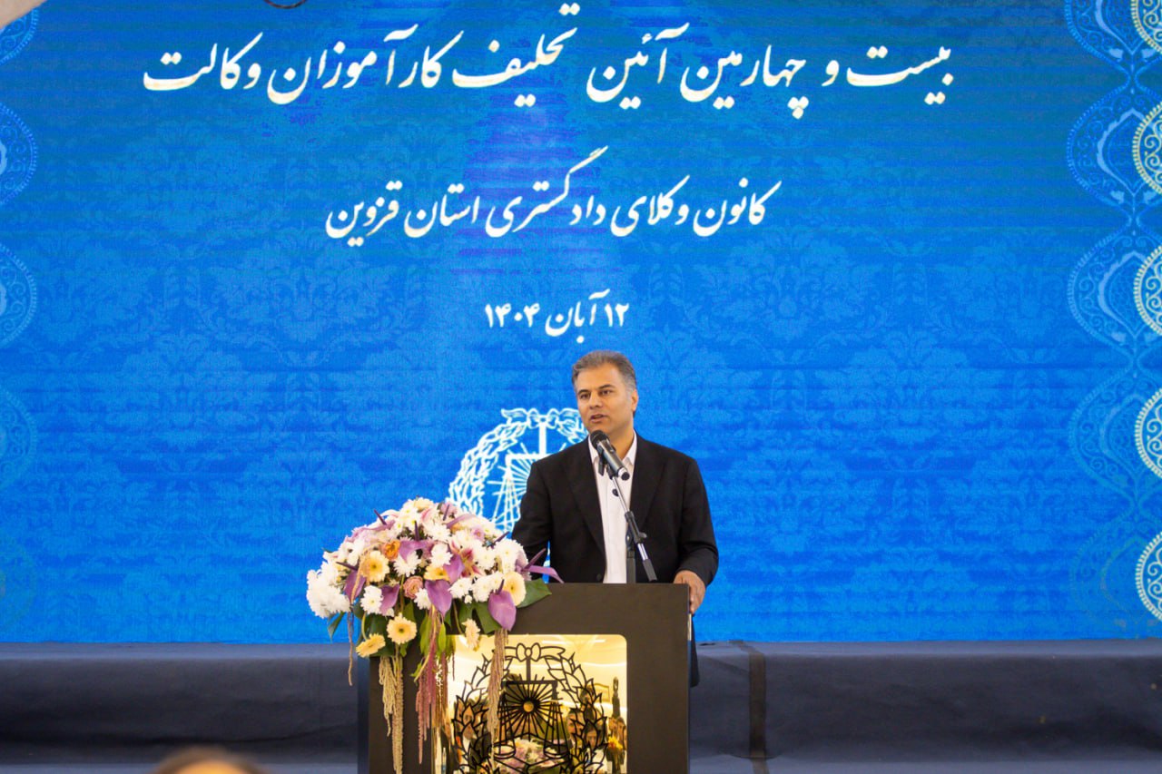 سید محمد حسینی، رئیس کانون وکلای دادگستری استان قزوین در این آیین، در سخنانی ضمن عرض خیرمقدم به حاضران، بهویژه جناب دکتر کیانی، سرپرست اتحادیه سراسری کانونهای وکلای ایران، حضور ایشان را در جمع وکلای قزوین مایه خرسندی و افتخار دانست و از خانوادههای محترم کارآموزان که در مسیر تلاش وکلای تازهتحلیفشده پشتیبان آنان بودهاند، قدردانی کرد.