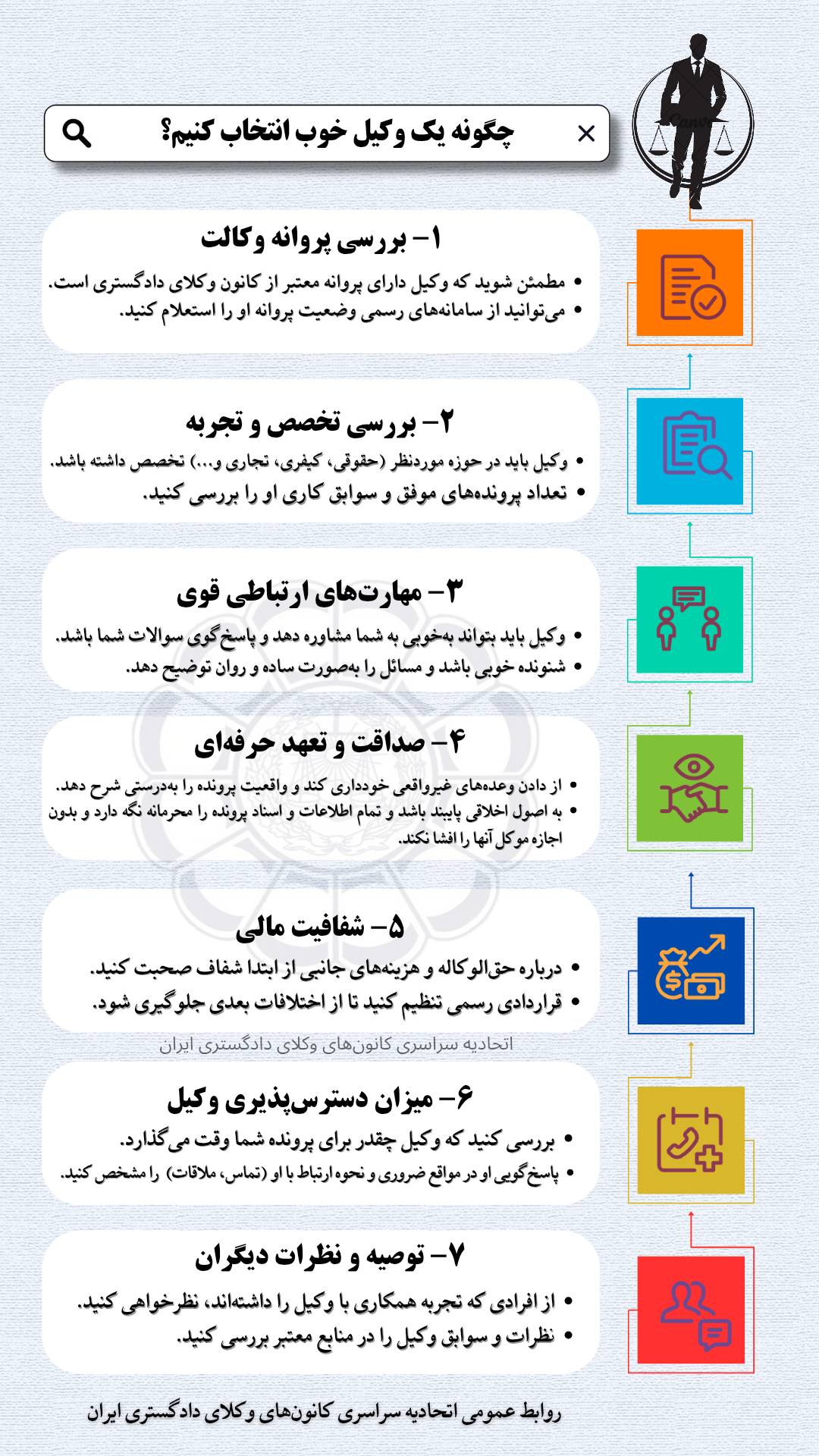 اینفوگرافی/ چگونه یک وکیل خوب انتخاب کنیم؟