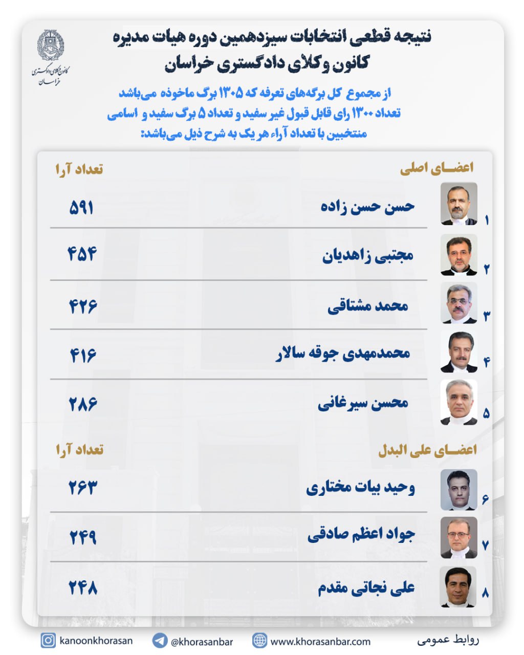 تأیید صحت انتخابات کانون وکلای خراسان از سوی دادگاه عالی انتظامی قضات